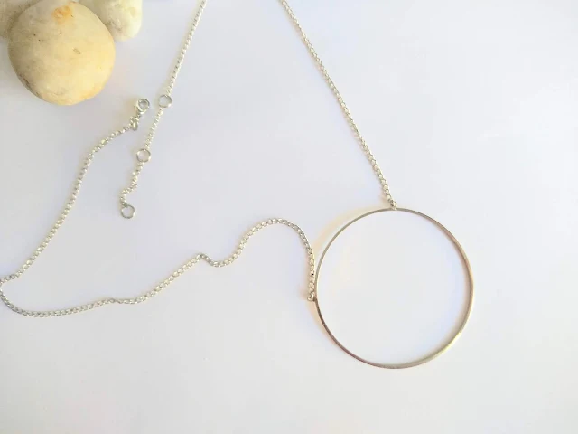 Colgante de estilo minimalista, formado por un ovalo plateado